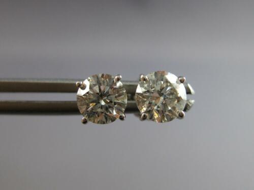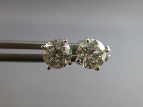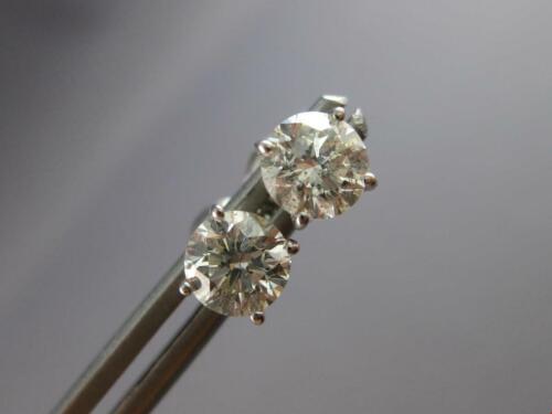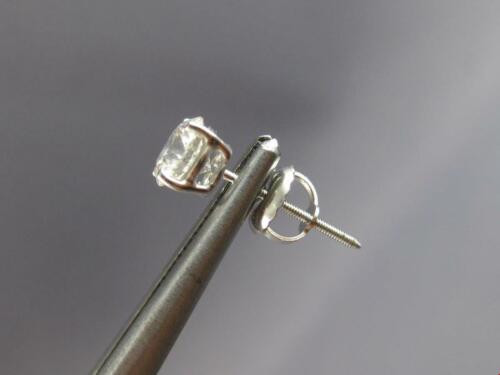 ESTATE 1.18CT DIAMOND 14KT WHITE GOLD 3D ROUND SOLITAIRE SCREWBACK STUD EARRINGS