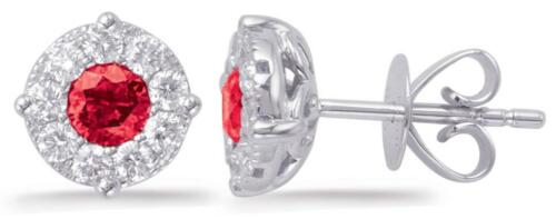 ESTATE 14KT WHITE GOLD STUD EARRINGS. 3D FLOWER FILIGREE DESIGN. DIAMONDS ARE F/G COLOR, VSSI CLARITY .46 CARATS. AAA RUBIES ARE .72 CARATS. MEASURES 8mm WIDE. WRITTEN APPRAISAL AVAILABLE. COMES IN A PRESENTABLE GIFT BOX.