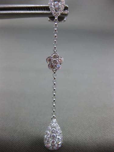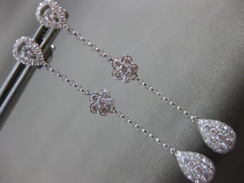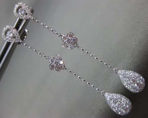 ESTATE 18KT WHITE GOLD HANGING EARRINGS. 3D SOLITAIRE TEAR DROP FLOWER DESIGN. DIAMONDS ARE F/G COLOR, VSSI CLARITY 1.19 CARATS. MEASURES 47mm X 6mm. WRITTEN APPRAISAL AVAILABLE. COMES IN A PRESENTABLE GIFT BOX.
