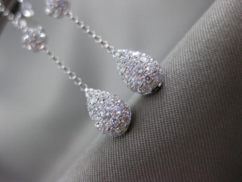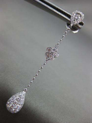 ESTATE 1.19CT DIAMOND 18K WHITE GOLD SOLITAIRE TEAR DROP FLOWER HANGING EARRINGS