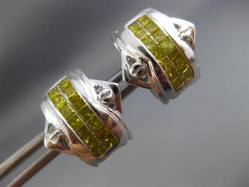 ESTATE 14KT WHITE GOLD STUD EARRINGS. 3D RECTANGULAR DESIGN. ROUND WHITE DIAMONDS ARE F/G COLOR, VSSI CLARITY. WHITE AND PRINCESS CUT INTENSE FANCY YELLOW DIAMONDS ARE 1.19 CARATS. MEASURES 13mm X 13mm. WRITTEN APPRAISAL AVAILABLE. COMES IN A PRESENTABLE GIFT BOX.