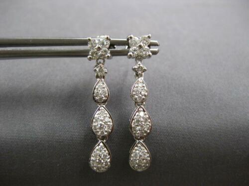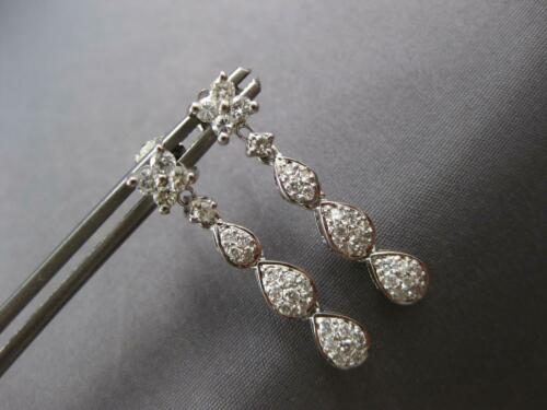 ESTATE 1.20CT DIAMOND 14KT WHITE GOLD FLOWER TEAR DROP JOURNEY HANGING EARRINGS