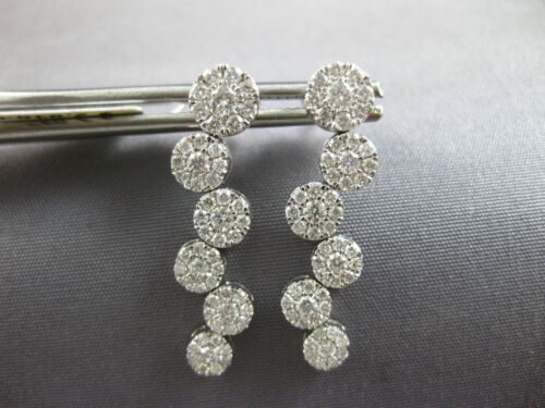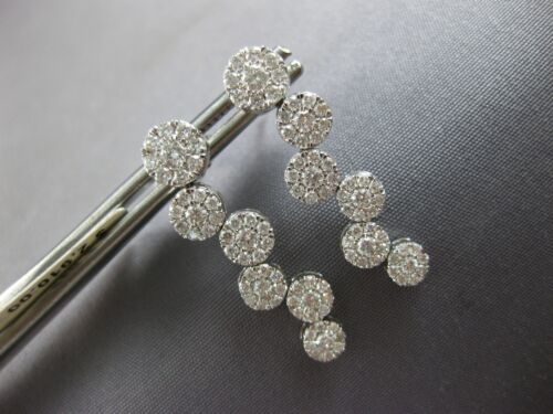 ESTATE 1.20CT DIAMOND 18KT WHITE GOLD MULTI FLOWER JOURNEY FUN HANGING EARRINGS