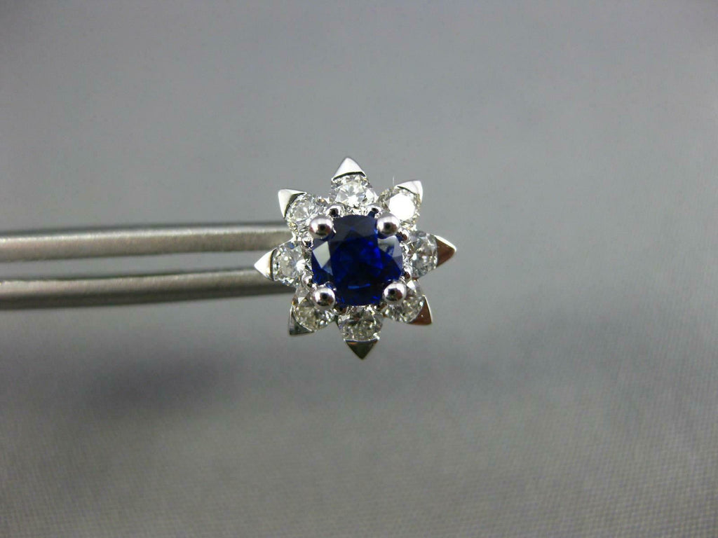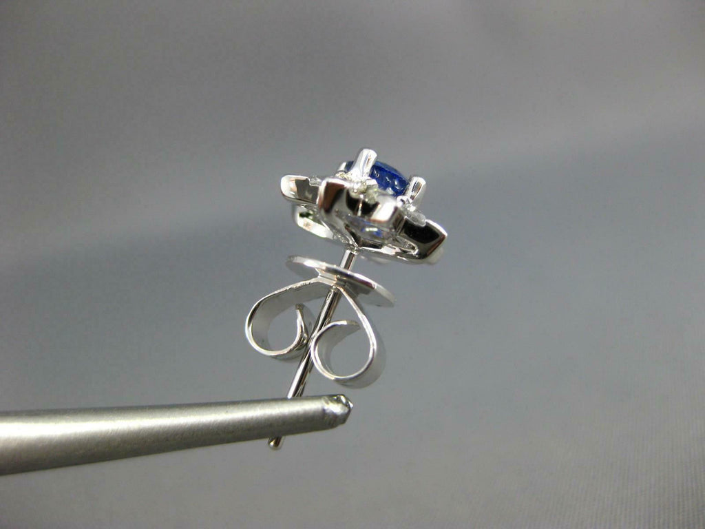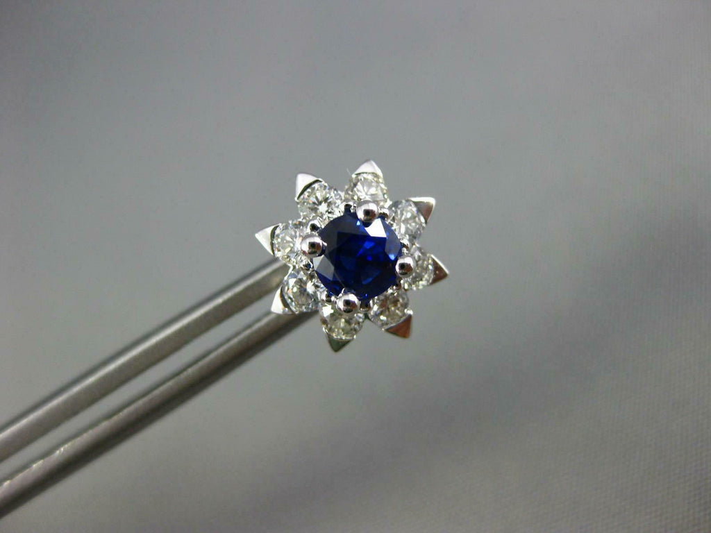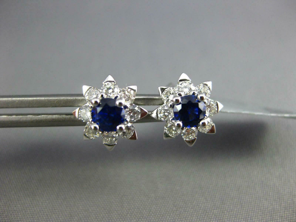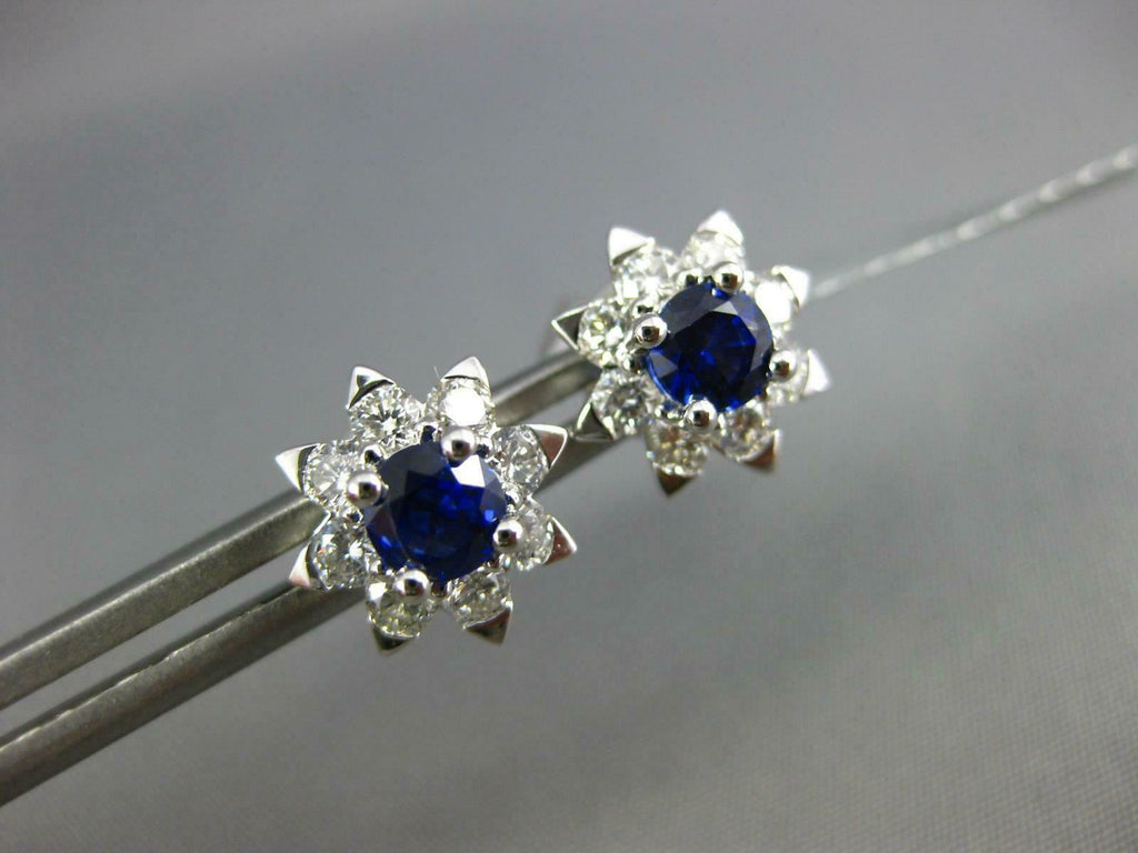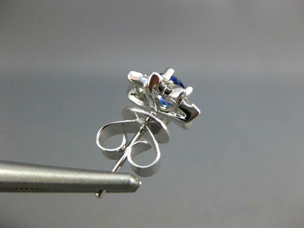 ESTATE 1.20CT DIAMOND & AAA SAPPHIRE 18K WHITE GOLD 3D FLOWER STAR STUD EARRINGS