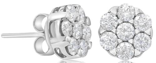 ESTATE 1.21CT DIAMOND 14KT WHITE GOLD 3D CLASSIC FLOWER STUD EARRINGS