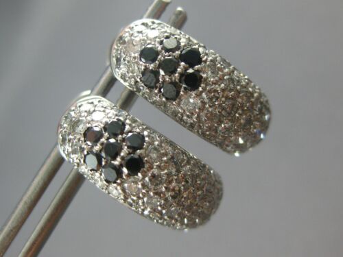 ESTATE 1.23CT WHITE AND BLACK DIAMOND 14KT WHITE GOLD FLOWER FUN HUGGIE EARRINGS