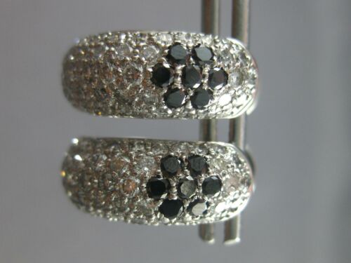 ESTATE 14KT WHITE GOLD FUN HUGGIE EARRINGS. 3D FLOWER DESIGN. WHITE DIAMONDS ARE F/G COLOR, VSSI CLARITY. WHITE AND BLACK DIAMONDS ARE 1.23 CARATS. MEASURES 18.5mm X 7mm. WRITTEN APPRAISAL AVAILABLE. COMES IN A PRESENTABLE GIFT BOX.