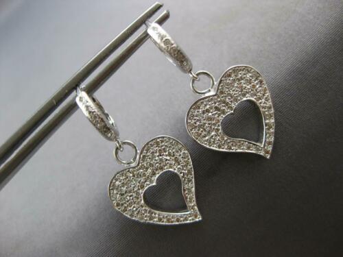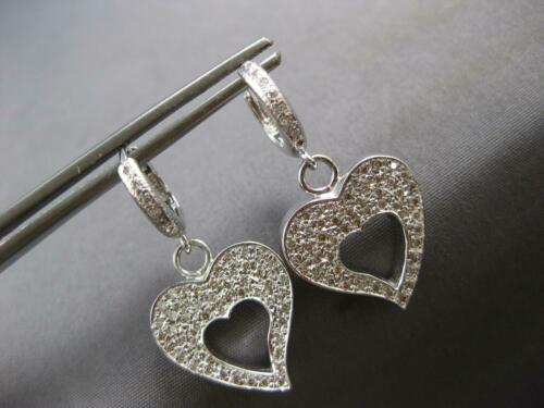 ESTATE 1.24CT DIAMOND 14KT WHITE GOLD DOUBLE HEART FUN HUGGIE HANGING EARRINGS