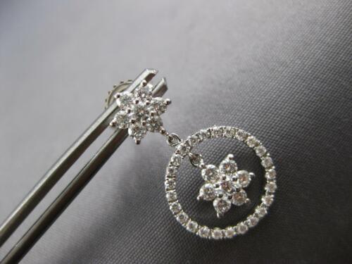 ESTATE 1.24CT DIAMOND 14KT WHITE GOLD FLOWER CIRCLE OF LIFE FUN HANGING EARRINGS