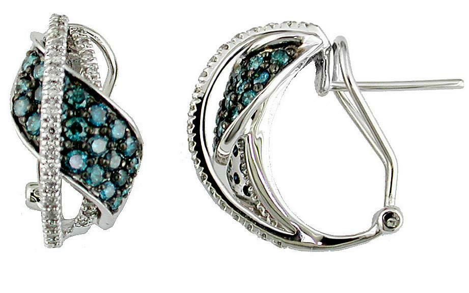 ESTATE 14KT WHITE GOLD CLIP ONEARRINGS. 3D LEAF DESIGN. WHITE DIAMONDS ARE F/G COLOR, VSSI CLARITY .24 CARATS. BLUE DIAMONDS ARE 1.0 CARAT. WRITTEN APPRAISAL AVAILABLE. COMES IN A PRESENTABLE GIFT BOX.