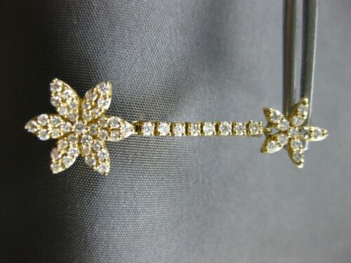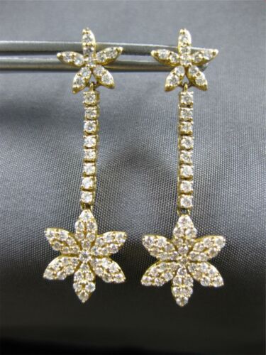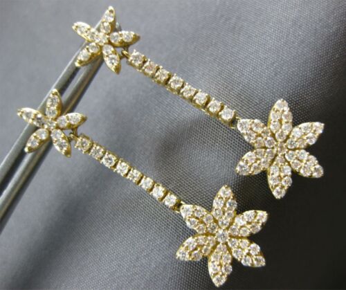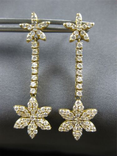 ESTATE 14KT YELLOW GOLD HANGING EARRINGS. 3D CLASSIC DOUBLE FLOWER DESIGN. DIAMONDS ARE F/G COLOR, VSSI CLARITY 1.25 CARATS. MEASURES 37mm X 11.5mm. WRITTEN APPRAISAL AVAILABLE. COMES IN A PRESENTABLE GIFT BOX.