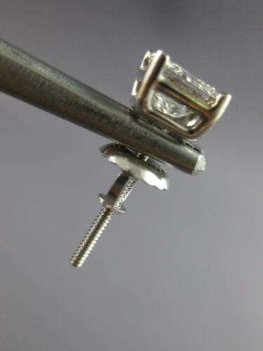 ESTATE 1.26CT DIAMOND 14KT WHITE GOLD PRINCESS SOLITAIRE STUD SCREWBACK EARRINGS