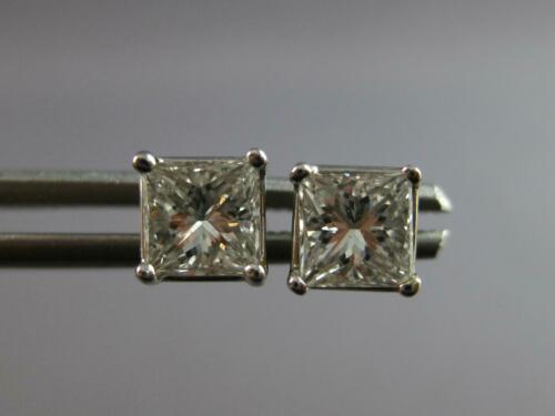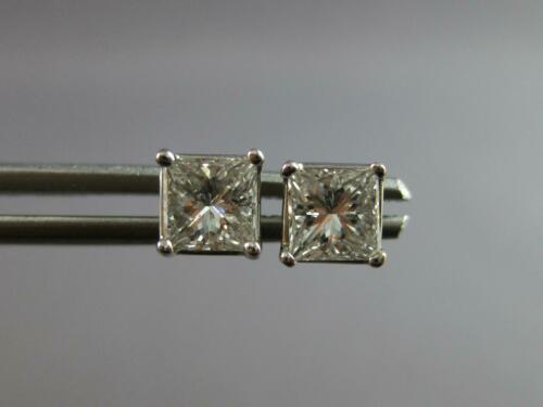 ESTATE 14KT WHITE GOLD STUD SCREWBACK EARRINGS. 3D SOLITAIRE DESIGN. PRINCESS CUT DIAMONDS ARE F/G COLOR, VSSI CLARITY 1.26 CARATS. MEASURES 5.5mm WIDE. WRITTEN APPRAISAL AVAILABLE. COMES IN A PRESENTABLE GIFT BOX.