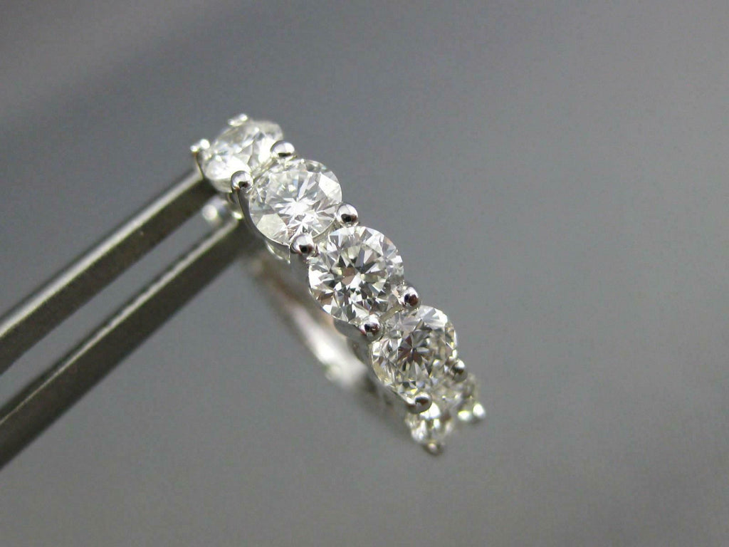 ESTATE 1.26CT DIAMOND 18KT WHITE GOLD 5 STONE ROUND SHARE PRONG HUGGIE EARRINGS