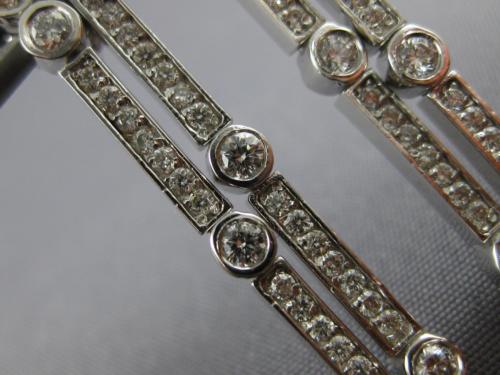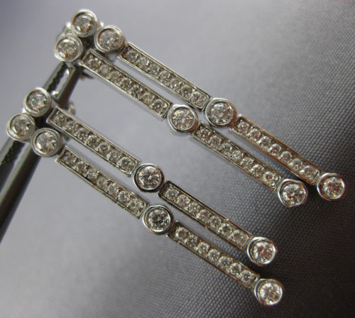 ESTATE 14KT WHITE GOLD HANGING EARRINGS. 3D BEZEL TWO ROW DESIGN. DIAMONDS ARE F/G COLOR, VSSI CLARITY 1.27 CARATS. MEASURES 34mm X 5mm. WRITTEN APPRAISAL AVAILABLE. COMES IN A PRESENTABLE GIFT BOX.