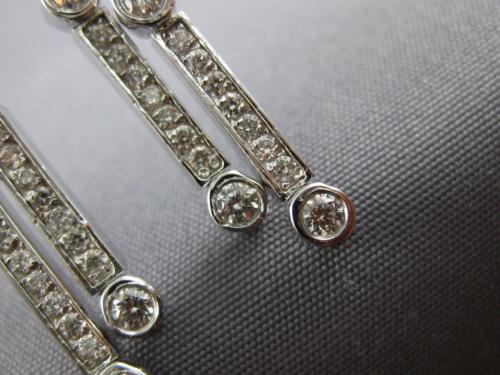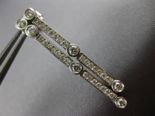 ESTATE 1.27CT DIAMOND 14KT WHITE GOLD BEZEL DOUBLE ROW HANGING EARRINGS #16917