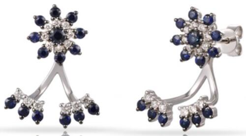 ESTATE 14KT WHITE GOLD FUN HANGING EARRINGS. 3D FLOWER DESIGN. ROUND DIAMONDS ARE F/G COLOR, VSSI CLARITY .30 CARATS. AAA ROUND SAPPHIRES ARE .97 CARATS. WRITTEN APPRAISAL AVAILABLE. COMES IN A PRESENTABLE GIFT BOX.