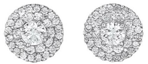 ESTATE 14KT WHITE GOLD STUD EARRINGS. 3D CLASSIC FLOWER DOUBLE HALO DESIGN. ROUND DIAMONDS ARE F/G COLOR, VSSI CLARITY 1.28 CARATS. MEASURES 10mm WIDE. WRITTEN APPRAISAL AVAILABLE. COMES IN A PRESENTABLE GIFT BOX.