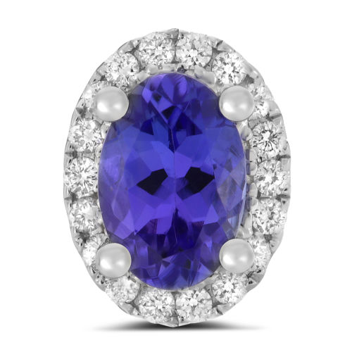 ESTATE 1.28CT DIAMOND & AAA TANZANITE 14KT WHITE GOLD HALO CLUSTER OVAL EARRINGS