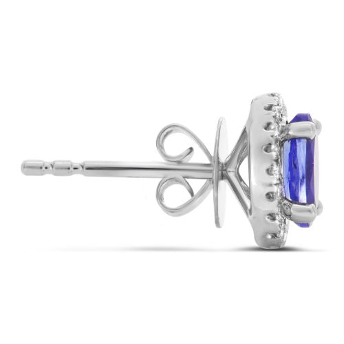 ESTATE 14KT WHITE GOLD STUD EARRINGS. 3D CLASSIC OVAL HALO CLUSTER DESIGN. DIAMONDS ARE F/G COLOR, VSSI CLARITY .16 CARATS. AAA TANZANITES ARE 1.12 CARATS. MEASURES 8mm X 6mm. WRITTEN APPRAISAL AVAILABLE. COMES IN A PRESENTABLE GIFT BOX.