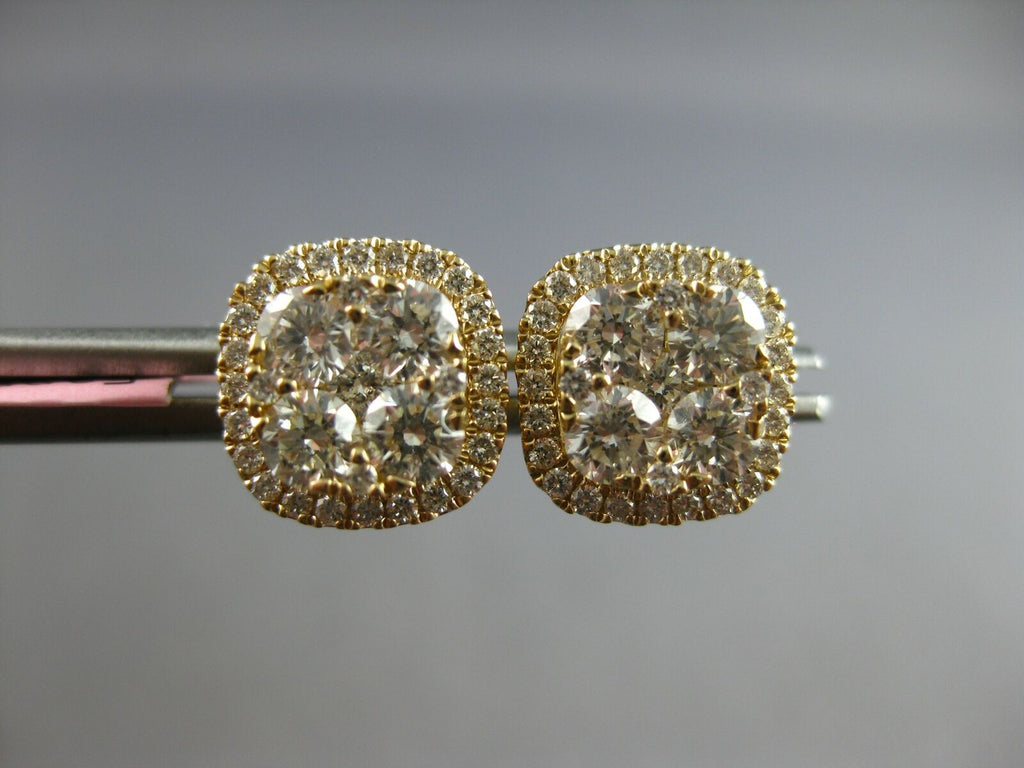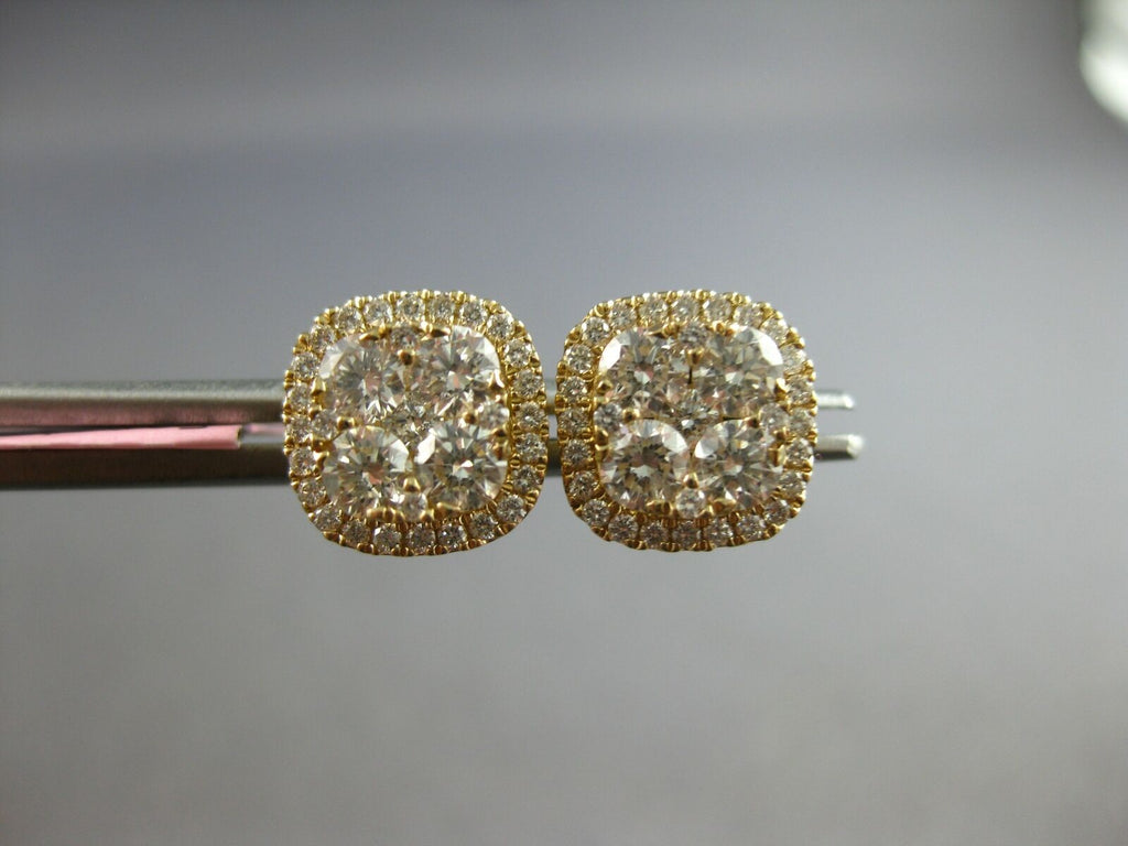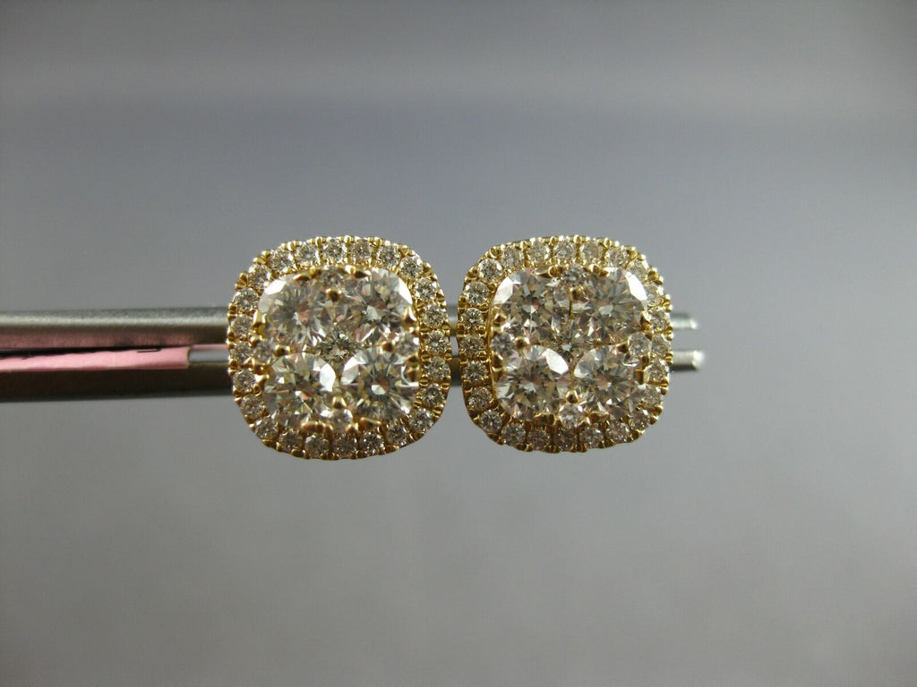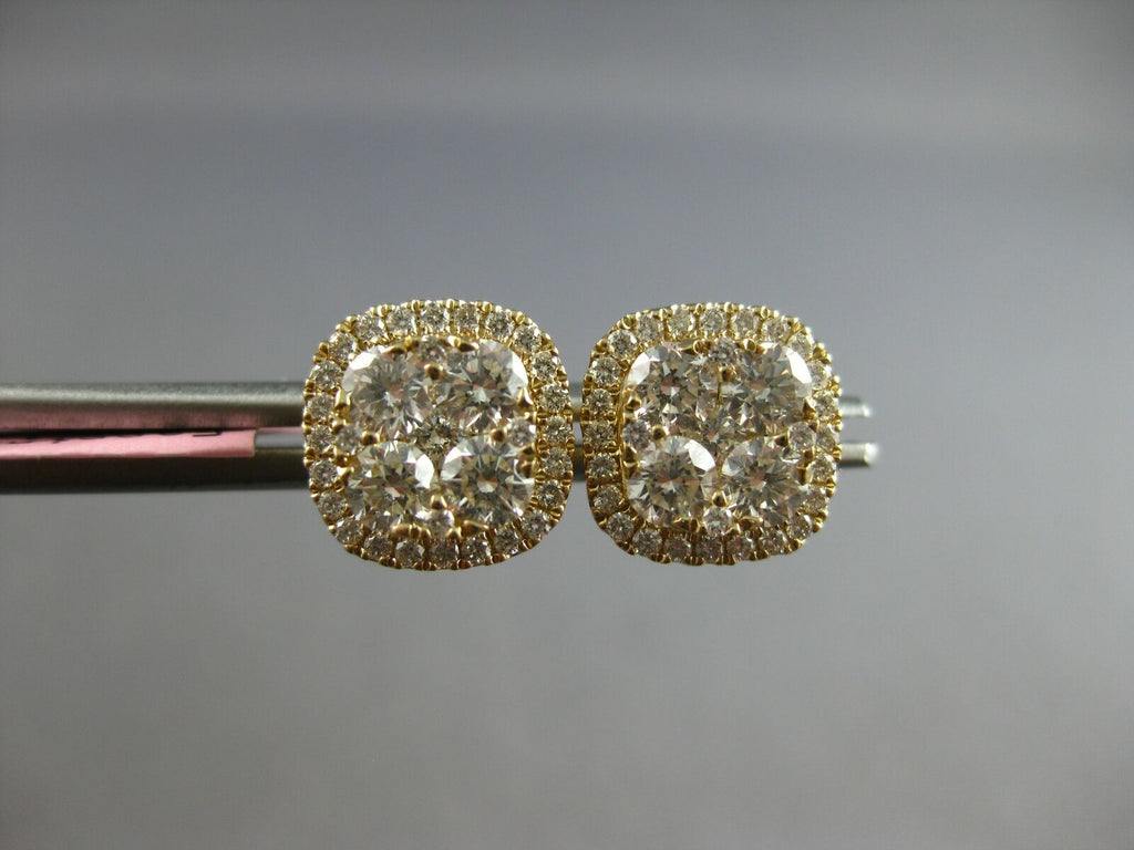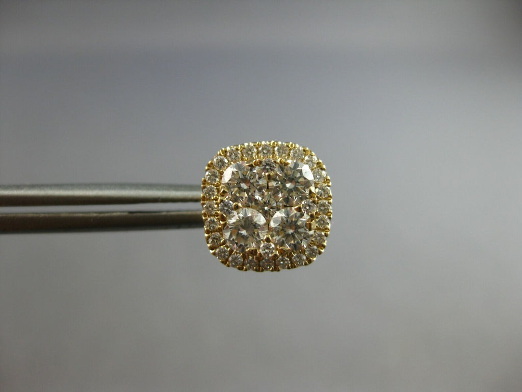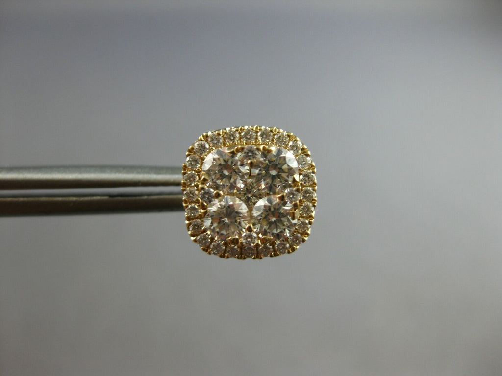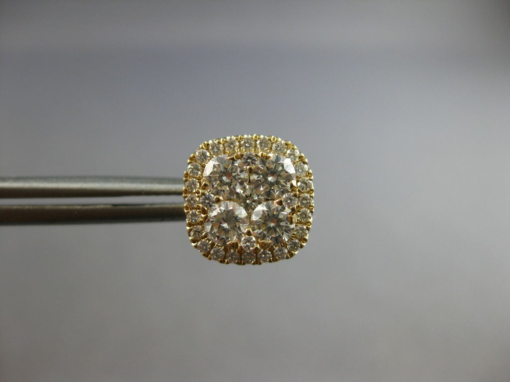 ESTATE 14KT YELLOW GOLD STUD EARRINGS. 3D CLASSIC INVISIBLE SQUARE HALO DESIGN. ROUND DIAMONDS ARE F/G COLOR, VSSI CLARITY 1.29 CARATS. MEASURES 9.2MM WIDE. WRITTEN APPRAISAL AVAILABLE. COMES IN A PRESENTABLE GIFT BOX.