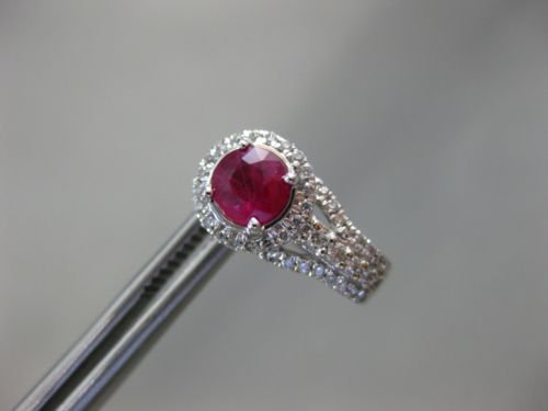 ESTATE 1.29CT DIAMOND & AAA RUBY 14K WHITE GOLD FILIGREE FLOWER HANGING EARRINGS