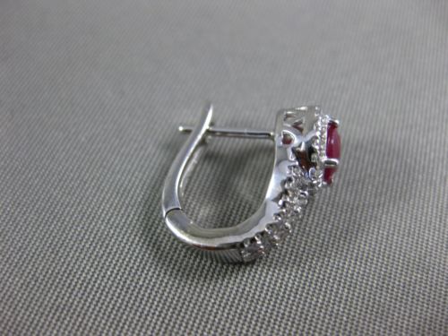 ESTATE 14KT WHITE GOLD HUGGIE HANGING EARRINGS. 3D FILIGREE FLOWER DESIGN. DIAMONDS ARE F/G COLOR, VSSI CLARITY .35 CARATS. AAA RUBIES ARE .94 CARATS. MEASURES 13mm X 7mm. WRITTEN APPRAISAL AVAILABLE. COMES IN A PRESENTABLE GIFT BOX.