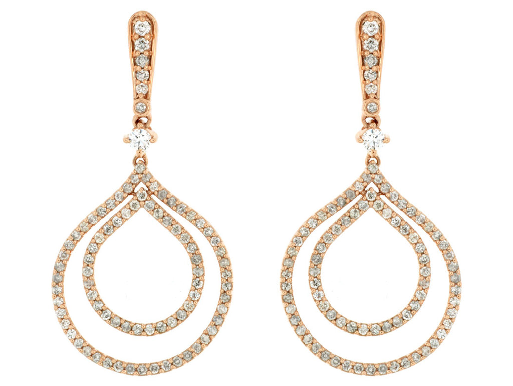 ESTATE 1.32CT DIAMOND 14KT ROSE GOLD DOUBLE OPEN TEAR DROP FUN HANGING EARRINGS