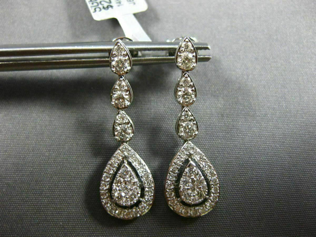ESTATE 1.32CT DIAMOND 14KT WHITE GOLD 3D CLUSTER TEAR DROP HALO HANGING EARRINGS
