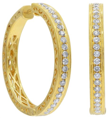 ESTATE 1.32CT DIAMOND 18KT YELLOW GOLD 3D CLASSIC FILIGREE HOOP HANGING EARRINGS