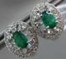ESTATE 1.32CT DIAMOND & AAA EMERALD 14KT WHITE GOLD OVAL FLOWER HUGGIE EARRINGS
