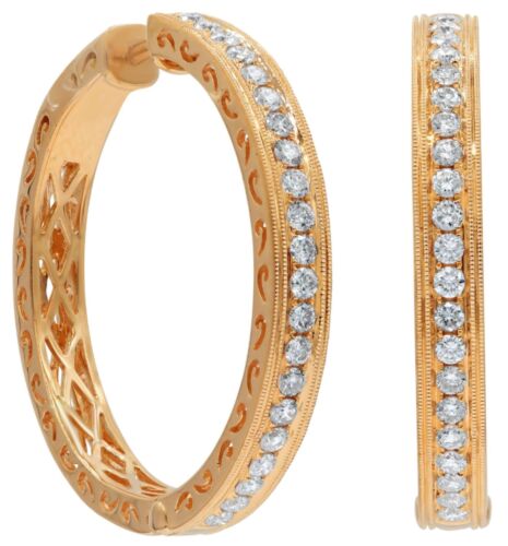 ESTATE 1.33CT DIAMOND 18KT ROSE GOLD 3D CLASSIC FILIGREE HOOP HANGING EARRINGS