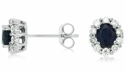 ESTATE 14KT WHITE GOLD STUD EARRINGS. 3D FLOWER CLASSIC DESIGN. DIAMONDS ARE F/G COLOR, VSSI CLARITY .45 CARATS. AAA SAPPHIRES ARE .90 CARATS. WRITTEN APPRAISAL AVAILABLE. COMES IN A PRESENTABLE GIFT BOX.