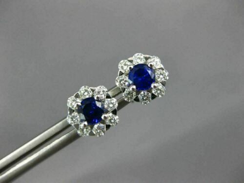 ESTATE 18KT WHITE GOLD EARRINGS. 3D CLASSIC FLOWER DESIGN. DIAMONDS ARE F/G COLOR, VSSI CLARITY .60 CARATS. AAA SAPPHIRES ARE .75 CARATS. MEASURES 8mm WIDE. WRITTEN APPRAISAL AVAILABLE. COMES IN A PRESENTABLE GIFT BOX.