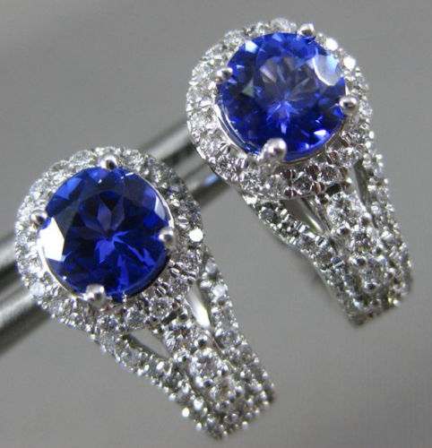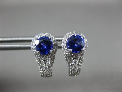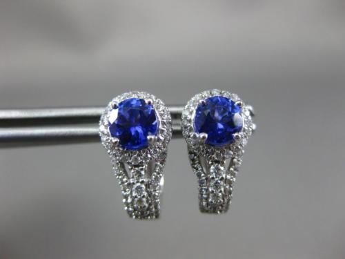 ESTATE 1.35CT DIAMOND & AAA TANZANITE 14KT WHITE GOLD 3D HALO HANGING EARRINGS