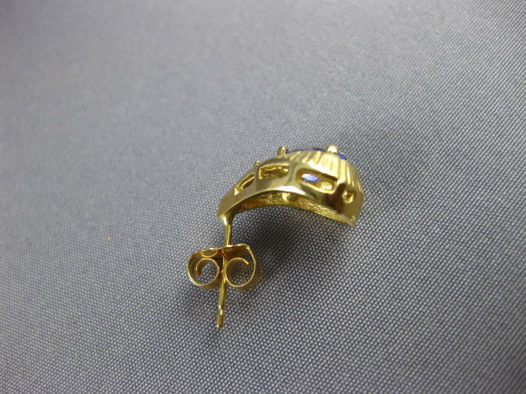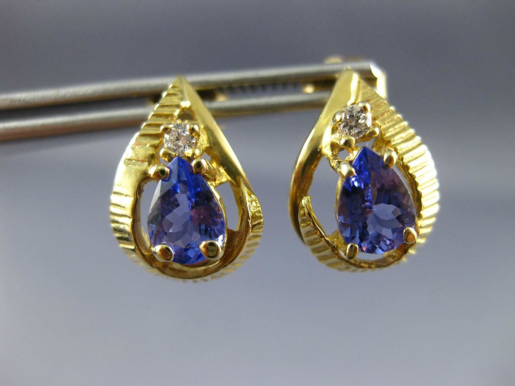 ANTIQUE 14 KT YELLOW GOLD EARRINGS. DIAMONDS ARE F/G COLOR, VVS/VS CLARITY, .06 CARATS. GENUINE ROUND CUT TANZANITES ARE 1.30 CARATS. MEASURES 15MM x 10MM. WRITTEN APPRAISAL AVAILABLE. COMES IN A PRESENTABLE GIFT BOX
