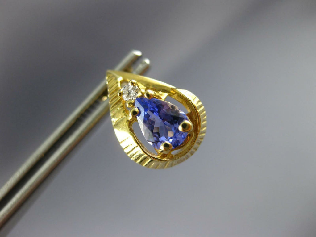 ESTATE 1.36CT DIAMOND PEAR TANZANITE 14K YELLOW GOLD POST FILIGREE EARRINGS 9762