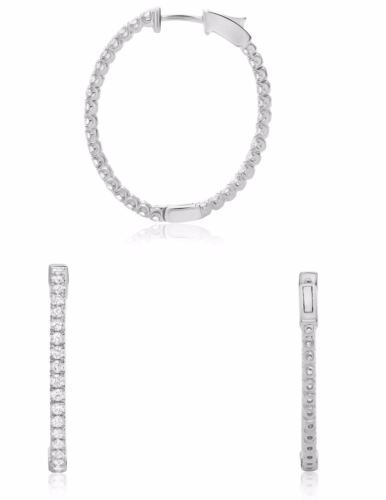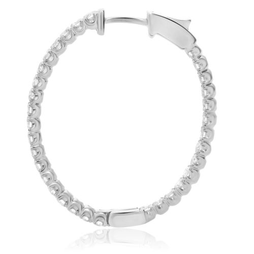 ESTATE 14KT WHITE GOLD HANGING EARRINGS. 3D CLASSIC OVAL INSIDE OUT DESIGN. DIAMONDS ARE F/G COLOR, VSSI 1.38 CARATS.  MEASURES 29mm X 25mm. WRITTEN APPRAISAL AVAILABLE. COMES IN A PRESENTABLE GIFT BOX.