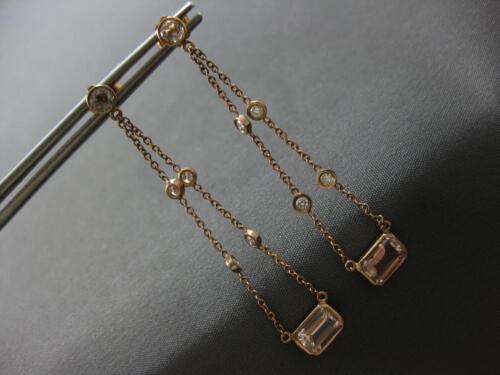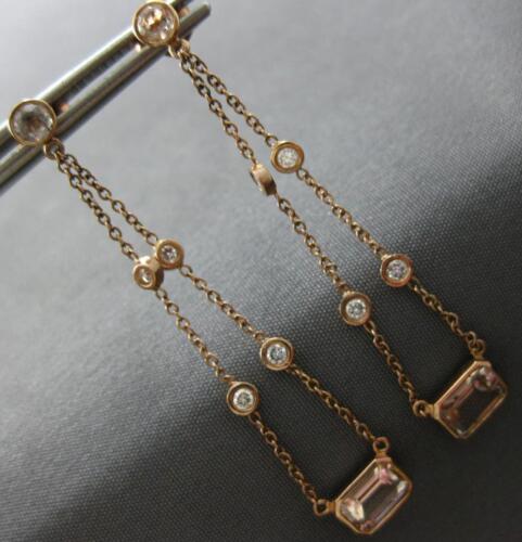 ESTATE 14KT ROSE GOLD FUN HANGING EARRINGS. 3D CHANDELIER BY THE YARD DESIGN. ROUND DIAMONDS ARE F/G COLOR, VSSI CLARITY .17 CARATS. AAA EMERALD CUT MORGANITES ARE 1.21 CARATS. MEASURES 44.5mm X 7mm. WRITTEN APPRAISAL AVAILABLE. COMES IN A PRESENTABLE GIFT BOX.