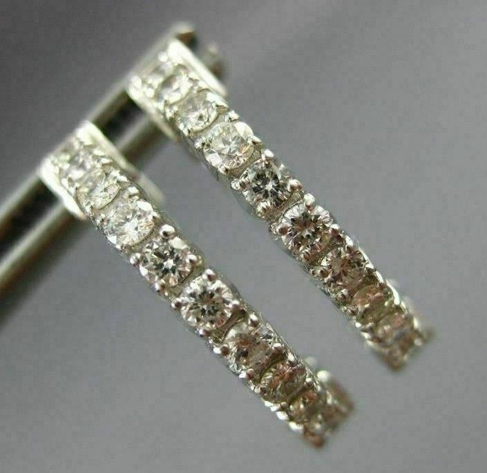 ESTATE 1.40CT DIAMOND 14KT WHITE GOLD DOUBLE SIDED HOOP HUGGIE EARRINGS #16569