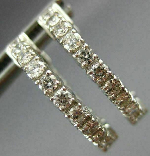 ESTATE 14KT WHITE GOLD HOOP HUGGIE EARRINGS. 3D DOUBLE SIDED HOOP DESIGN. ROUND DIAMONDS ARE F/G COLOR, VS CLARITY 1.40 CARATS. MEASURES 17mm X 3mm. WRITTEN APPRAISAL AVAILABLE. COMES IN A PRESENTABLE GIFT BOX.