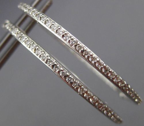 ESTATE 14KT WHITE GOLD HOOP EARRINGS. 3D INSIDE OUT DESIGN. ROUND DIAMONDS ARE F/G COLOR, VS/VVS CLARITY 1.42 CARATS. MEASURES 42mm X 2mm WIDE. WRITTEN APPRAISAL AVAILABLE. COMES IN A PRESENTABLE GIFT BOX.