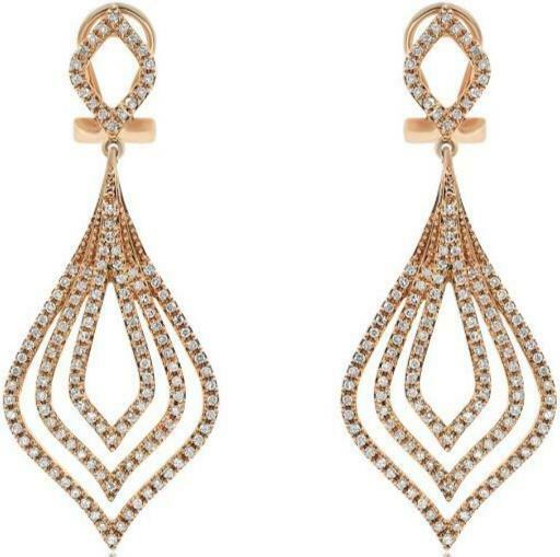 ESTATE 14KT WHITE AND YELLOWGOLD FUNHANGING EARRINGS. 3D FLOWER TRIANGULAR DESIGN. DIAMONDS ARE F/G COLOR, VSSI CLARITY 1.44 CARATS. WRITTEN APPRAISAL AVAILABLE. COMES IN A PRESENTABLE GIFT BOX.