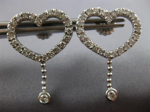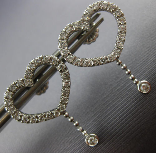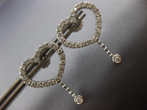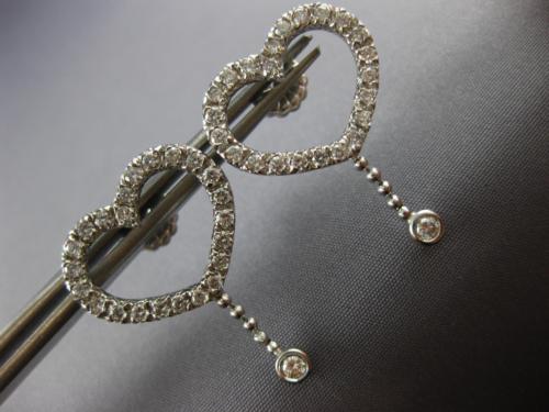 ESTATE 1.44CT DIAMOND 14KT WHITE GOLD 3D OPEN HEART LOVE HANGING EARRINGS #18173