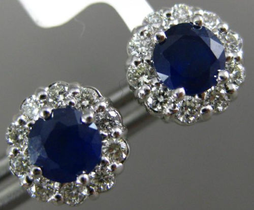 ESTATE 14KT WHITE GOLD EARRINGS. 3D ROUND FLOWER DESIGN. DIAMONDS ARE F/G COLOR, VSSI CLARITY .40 CARATS. AAA SAPPHIRES ARE 1.05 CARATS. MEASURES 8mm X 8mm. WRITTEN APPRAISAL AVAILABLE. COMES IN A PRESENTABLE GIFT BOX.
