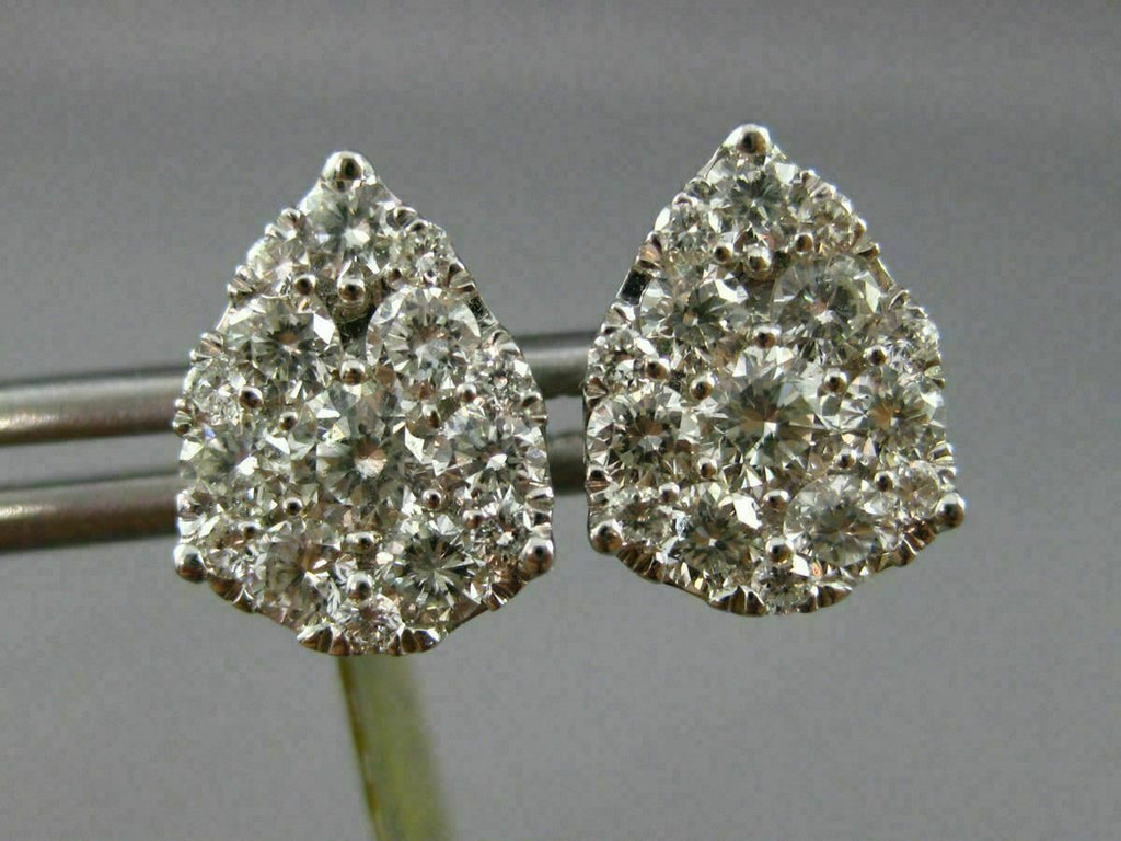 ESTATE 18KT WHITE GOLD CLASSIC STUD EARRINGS. 3D CLUSTER TEAR DROP PEAR SHAPE DESIGN. DIAMONDS ARE F/G COLOR, VSSI CLARITY 1.49 CARATS. MEASURES 11mm X 8mm WIDE. WRITTEN APPRAISAL AVAILABLE. COMES IN A PRESENTABLE GIFT BOX