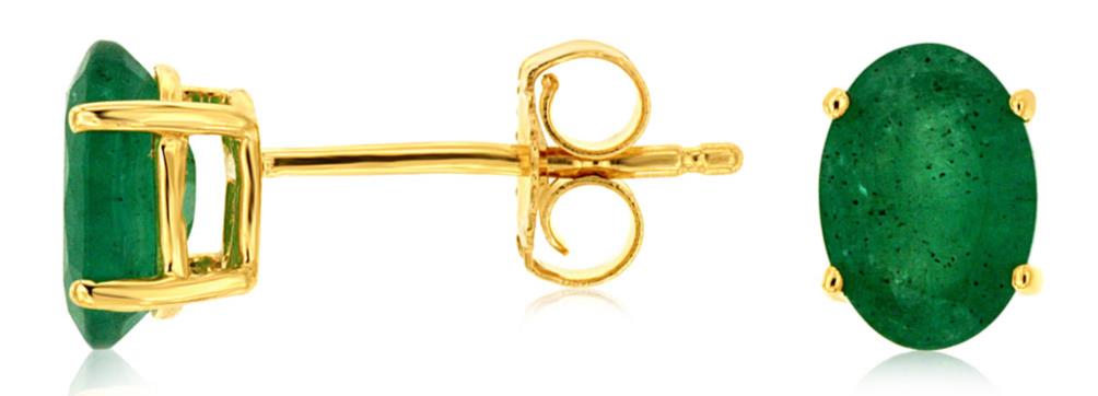 ESTATE 1.50CT AAA EMERALD 14KT YELLOW GOLD 3D CLASSIC OVAL STUD EARRINGS