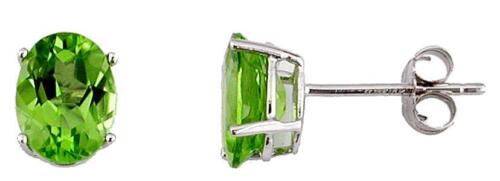 ESTATE 14KT WHITE GOLD STUD EARRINGS. 3D CLASSIC DESIGN. AAA EXTRA FACETED OVAL PERIDOTS ARE 1.50 CARATS. WRITTEN APPRAISAL AVAILABLE. COMES IN A PRESENTABLE GIFT BOX.