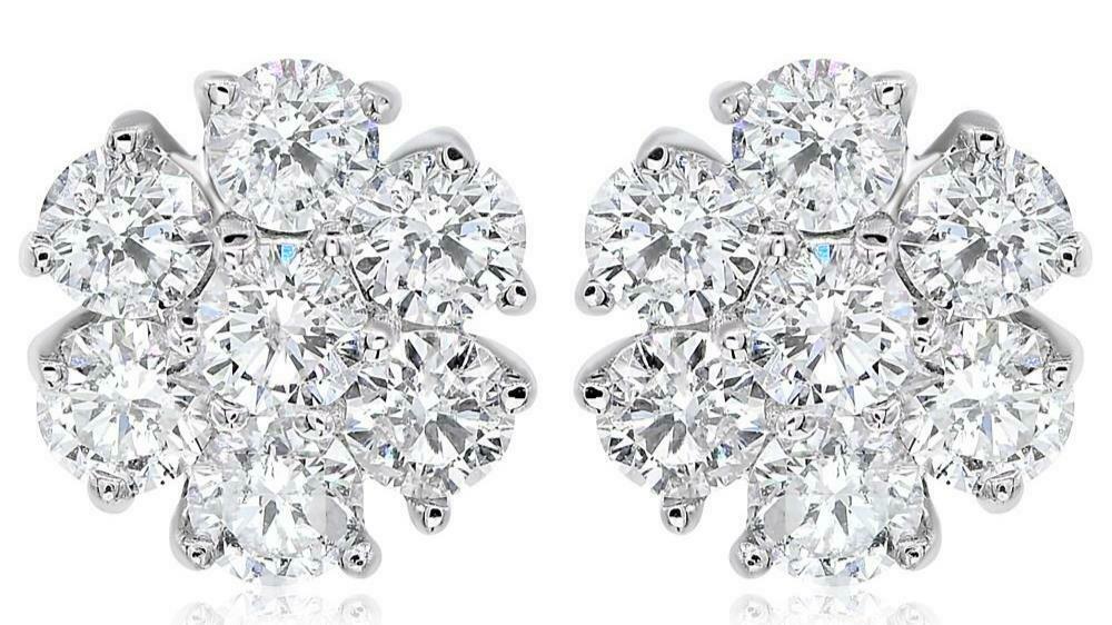 ESTATE 14KT WHITEGOLD STUDEARRINGS. 3D CLASSIC FLOWERDESIGN.DIAMONDS ARE F/G COLOR, VSSI CLARITY 1.50CARATS.WRITTEN APPRAISAL AVAILABLE. COMES IN A PRESENTABLE GIFT BOX.