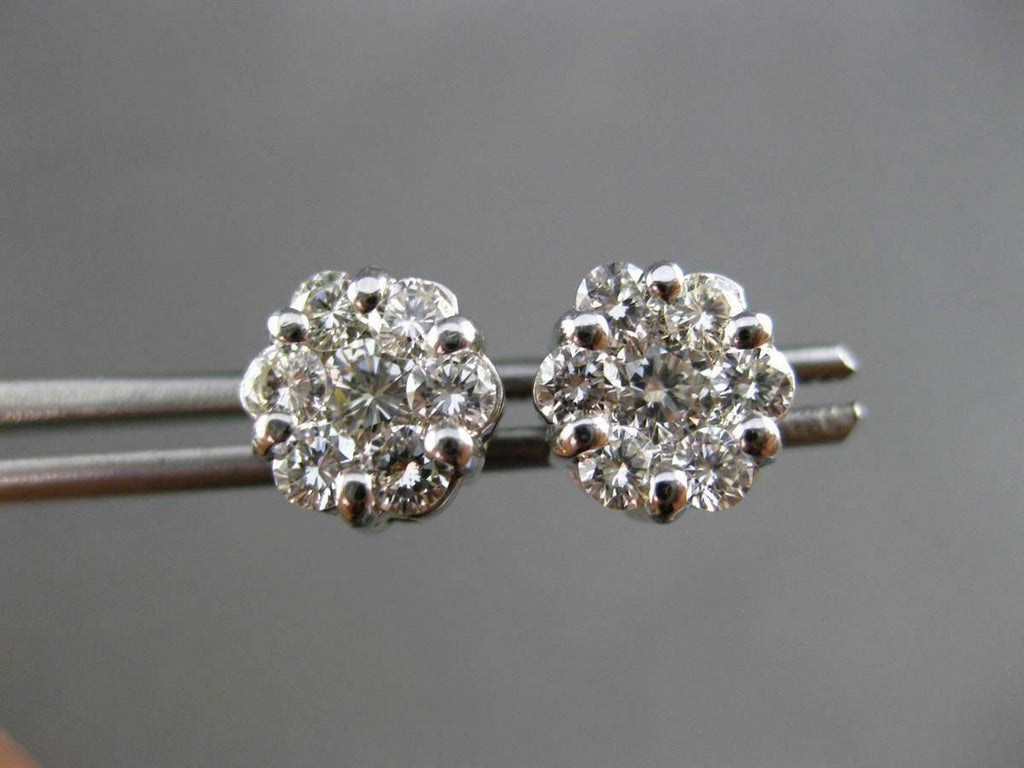 ESTATE 1.50CT DIAMOND 14KT WHITE GOLD 3D FLOWER CLUSTER STUD EARRINGS #24556